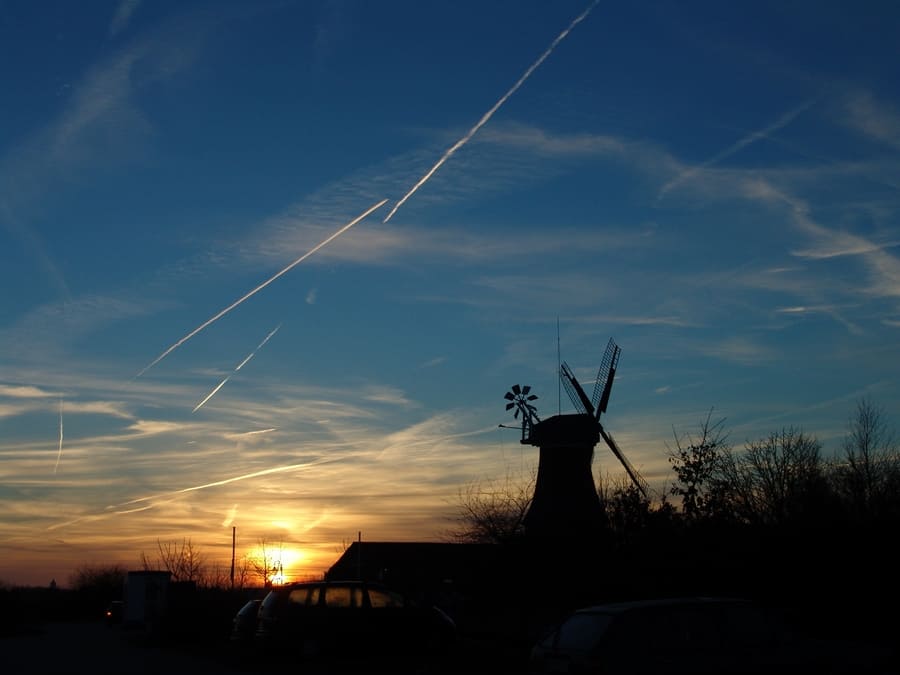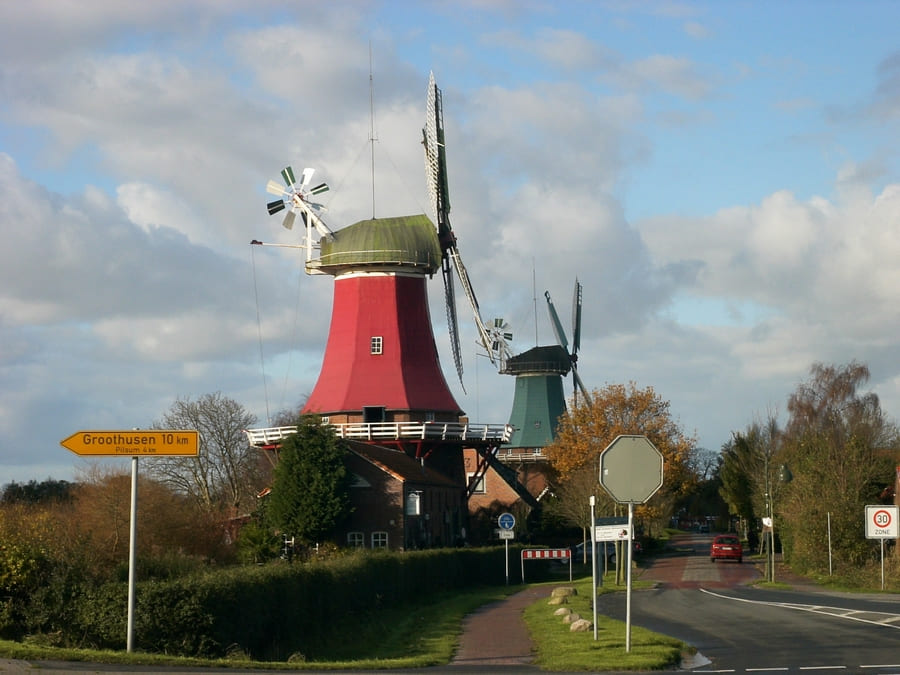 hinaus die Zwillingsmühlen. Die Holländerwindmühlen stammen aus den